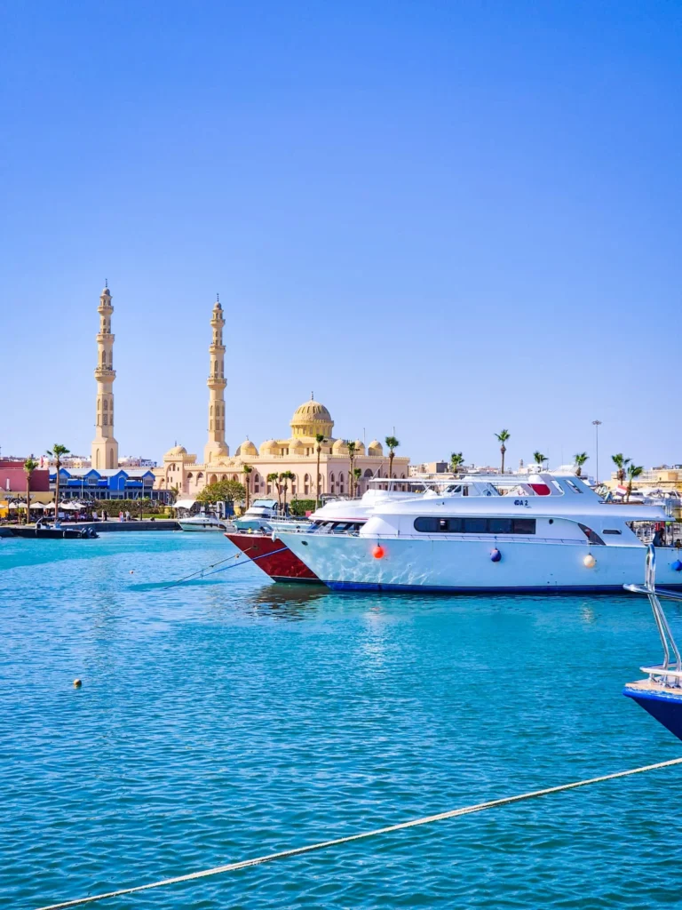 Would you also like to visit the most stunning mosque in Hurghada? We’d be delighted to show it to you, along with the nearby boat docks.